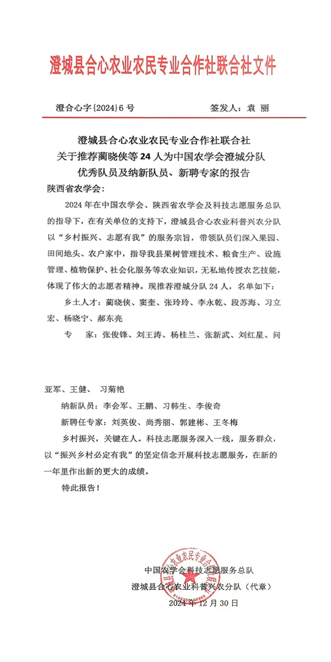 1月9日,阳光灿烂,澄城县寺前镇东习村百亩樱桃园边的安梓习乡村民宿大院里时时传出欢声笑语,让这冬日的阳光格外温暖。依托澄城合心农业合作社联合社成立的中国农学会科技志愿服务总队澄城县合心农业科普兴农分队正在召开年终座谈会,旨在感谢各位专家、吸纳新队员、表彰优秀队员。
