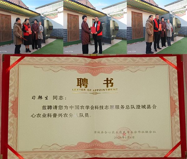 向新聘任的科普兴农分队刘英俊、王冬梅、尚秀丽、郭建彬等专家颁发聘书
